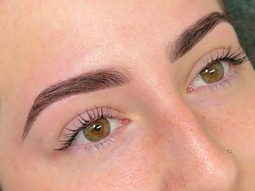 Brow and lash services include shaping, tinting or hybrid dye, lamination, and tailored lash treatments. Each appointment begins with a brief consultation to determine the most suitable approach.